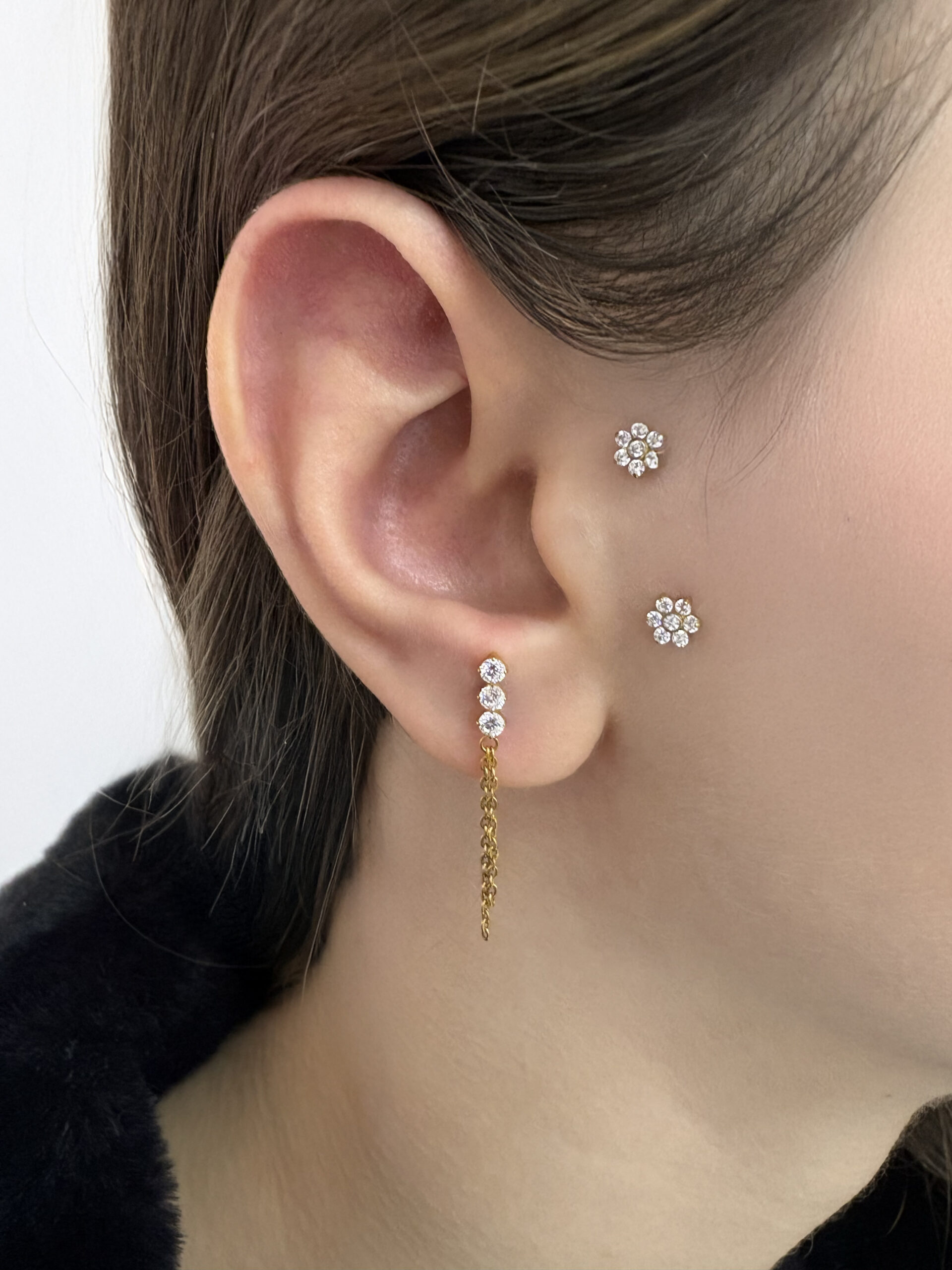 Zincirli 3 Taşlı Model Titanyum Piercing